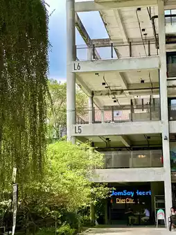 As the sun begins to set, the rooftop becomes the perfect vantage point — the sky painted in soft golds and purples, a serene contrast to the lively hum below. On weekends, the atmosphere comes alive: families strolling, creatives sketching, and couples tucking themselves into quiet corners.