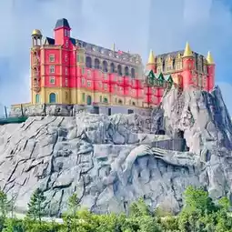 This place is unique due to its design, featuring giant stone hands that appear to be holding the bridge, giving the feeling of being in the hands of a giant.