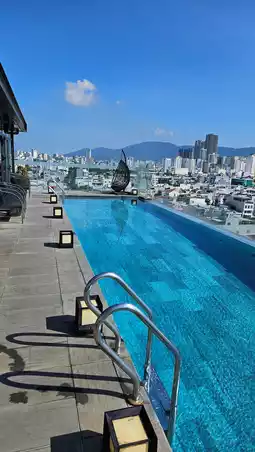 There is a swimming pool on the rooftop. Although it is a bit hot during the day, it is a perfect experience at night. You can overlook the night view of Da Nang by the swimming pool.