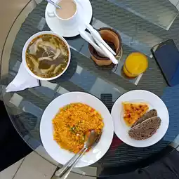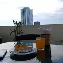 Breakfast is on the top floor. Not many options of foods but still didn't fail us. However, overall it was a pleasant stay in this hotel especially the bedroom.