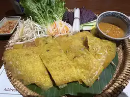 Bánh Xèo is a yellow rice flour crepe made with turmeric, stuffed with bean sprouts, pork, and shrimp, then wrapped in fresh vegetables and dipped in nuoc cham (sweet and tangy sauce). Da Nang’s version is larger and more generously filled than usual, offering a satisfying bite. Locals often pair it with herbs like basil and mint, adding an aromatic twist to the dish.