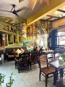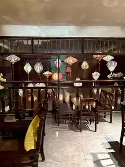 it stands out, and when you go inside, the walls decorated with Vietnamese traditional hats