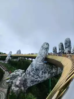 The Golden Bridge, often referred to as "God's Hand," is a stunning bridge supported by massive hand sculptures located within Ba Na Hills.
