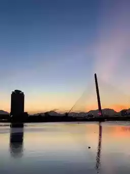 Currently, there are fireworks festivals and even a world fireworks competition happening around the Da Nang River. Although I haven't visited during those events, I was able to enjoy a truly stunning sunset by the Han River, and it was absolutely amazing.