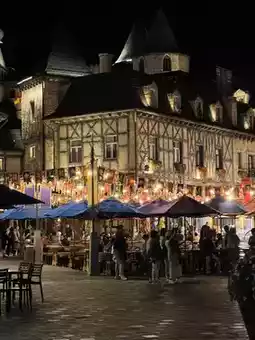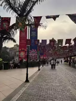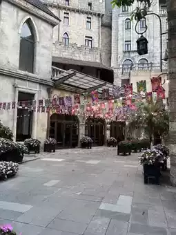 A French-style village located on a mountain, offering numerous photo opportunities. There are activities to enjoy throughout the day, including rides, scenic spots, and even a beer garden for evening relaxation.