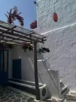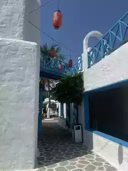 White stairs, pastel walls, and the sea stretching endlessly ,it’s the kind of place made for slow walks, golden light, and soft daydreams.