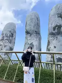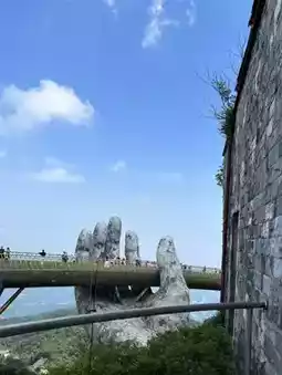 This bridge is located in the Ba Na Hills area on a mountaintop about 1,400 meters above sea level. The weather is cool all year round. It stands out with its unique design.