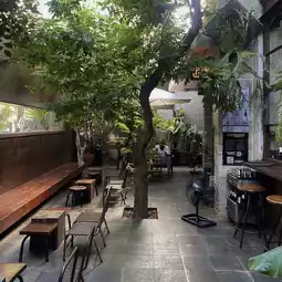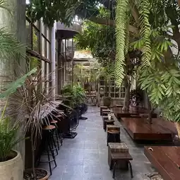 สองโซนเด็ด: โซนสวนร่มรื่นให้ความรู้สึกสดชื่นใกล้ชิดธรรมชาติ และอินดอร์โถงสูงโปร่งใช้ปูนเปลือย-เหล็ก-ไม้ สร้างสมดุลระหว่างความดิบและความอบอุ่น เหมาะกับการนั่งจิบกาแฟหรือทำงานทั้งวัน ()