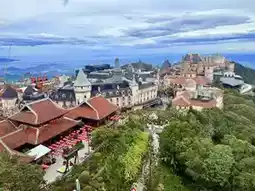 Visit Bana Hills (Bana hills) on the top of a high mountain. It is a simulated French village (French Village Bana Hills) located on the Truong Son mountain range near Da Nang city in central Vietnam. It is a tourist attraction, an amusement park. The way to go up to Bana Hills is to take the cable car, which is the highest and longest in the world.