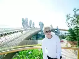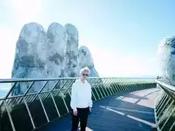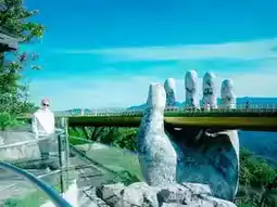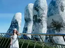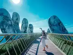 The Golden Bridge is a sky bridge located on Bana Hills in Da Nang, Vietnam. The bridge is 150 meters long and 1,414 meters above sea level. This bridge connects Marseille Station to Thien Thai Park and Le Jardin d'Amour Park.