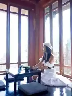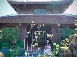 I happened to find this shop while walking up the hill to Linh Phong Sen Pagoda on Bana Hills, Danang, Vietnam. I saw a sign saying Tea House, so I decided to stop by. The shop is beautifully decorated with brown-colored wood. The interior is airy, with a high ceiling and glass windows for us to sit and enjoy the view. Their tea is very fragrant. You can also see the pagoda of the temple in front of the shop.