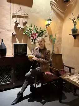- Moroccan interior: carpets, cushions, spice aromas, and the sound of water from a fountain