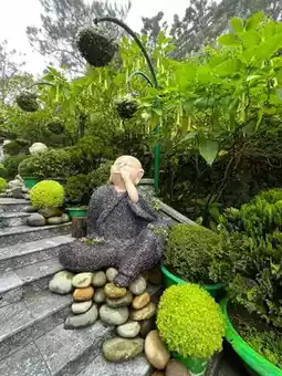 But my personal favorite? The Buddhist-inspired spiritual zone tucked at the upper level — peaceful, less crowded, and lined with pagodas, stone statues, and fluttering prayer flags. A beautiful contrast to the bustling French-style village.