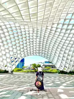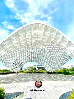 which is beautifully and modernly designed. It is a symbol of peace and cooperation. The sculpture has a curved design with gaps for light to pass through, creating beautiful shadows and is a popular photo spot that everyone who comes must take a photo! Take cool photos. In addition, there are other sculptures