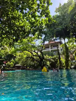 and the sunlight doesn't shine in too much, so it's perfect for swimming, and the water isn't too deep, so it's perfect for playing with kids.