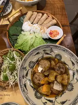 One of the highlights of this Da Nang trip was getting to taste authentic Vietnamese food at An Thoi, a famous restaurant that just received the Michelin Guide 2024 award. 🍜✨ The restaurant is located not far from the Han River. The atmosphere is simple but very lively. When we went, there were so many people that we had to wait in line. But strangely, we didn't have to wait long because the queue system is very well organized. The staff are also lovely and the service is fast.