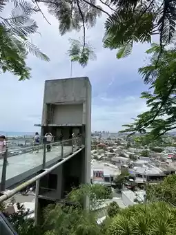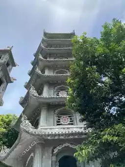 We departed from Hoi An, it took about 30 minutes, the round trip by car was about 1 hour. The entrance fee including the elevator to the pagoda was only 45,000 dong, which is very worthwhile. Because taking the elevator saves a lot of time and energy. The elevator took us from the foot of the hill to the temple grounds above in just a few minutes.