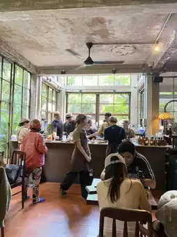 We stumbled upon Tan Coffee while strolling through the city center. We saw it was packed, so we had to stop by. Upon entering, we were delighted! The shop is housed in an old building with an industrial-retro style, open with steel frames, raw materials, and exposed lines. Natural light fills every corner, adding charm.