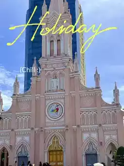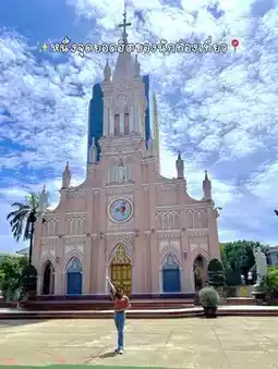 Discover the location of a popular tourist attraction among Thais, with the familiar name "Pink Church." Built in Gothic style, it stands approximately 70 meters tall. Its distinctive features include its tall, pointed spire and stained glass windows with sacred motifs. It's the only church in Da Nang built during the French occupation, making it a surviving example of early colonial architecture. We arrived just before lunchtime, so we snuck into a cafe to take some afternoon photos (I hadn't checked the opening hours).
