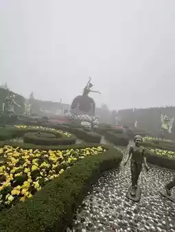 The French Village looked straight out of Europe, complete with cobblestone alleys, castles, and live performances. I also stopped by Vườn Thiên Thai and enjoyed the peaceful garden views. Even in the fog, the scenery was magical.
