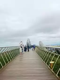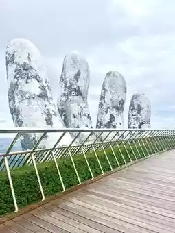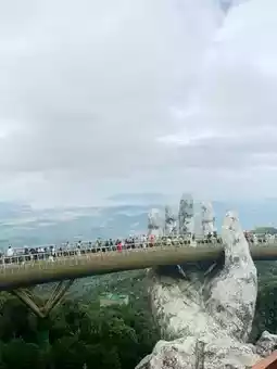 Golden Bridge or "Hand Bridge" in Vietnam is a must-visit destination located in Da Nang. This iconic attraction is a dream destination for many travelers. Situated on a mountain, visitors need to take a cable car to reach it. The round-trip cable car fare is approximately 900 THB. For those who wish to stay overnight, there are hotels available on the mountain, with prices ranging from 1,500 to 2,000 THB per person. Staying overnight includes discounts on the cable car fare and a buffet breakfast. Besides enjoying the stunning views and taking chic photos on the Hand Bridge, there are also several large castles perfect for photography. It's guaranteed to leave a lasting impression!
