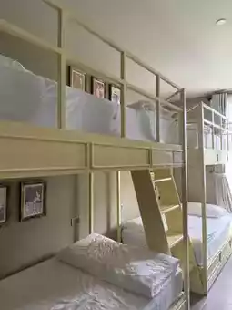 Mercure Danang French Village Bana Hills is the only accommodation on Bana Hills. It's a 4-star hotel, and you must check in from the ground floor before ascending. There's a separate cable car for non-hotel guests. After checking in and paying for the cable car, the staff will help carry your luggage and escort you up the cable car. The ride takes about 15 minutes. The view is stunning, offering views of the mountains and waterfalls. We visited in May, and it was quite hot down there, but once we reached the top, the weather was quite pleasant. Once we reached the top, we checked in again to receive our key card. We booked a room for four with two bunk beds. The room was large, spacious, and well-proportioned. The room was fully equipped, clean, and comfortable. Plus, the price included a breakfast buffet, which was a great value.