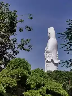 The pagoda's signature attraction is the 67-meter tall white statue of Guanyin (Lady Buddha), the tallest of its kind in Vietnam and among the tallest in the world. It stands on a lotus-shaped base 35 meters wide and is visible from many parts of Da Nang.