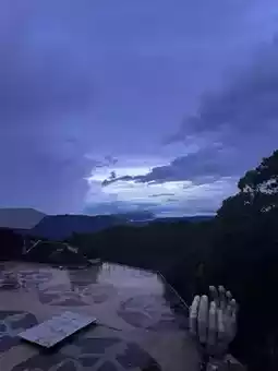 A unique structure where two giant stone hands support the golden bridge. ✋🌉