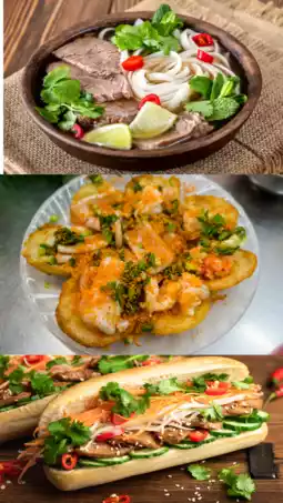 🍜 Vietnamese Food – Profound Simplicity: Nothing completes a trip better than savoring local delicacies. Warm pho, fragrant with cinnamon and star anise; crispy, tender banh mi, served with a sweet and sour dipping sauce; and banh mi, bursting with flavors from both France and Vietnam. Every bite tells the story of a seamless blend of cultures.