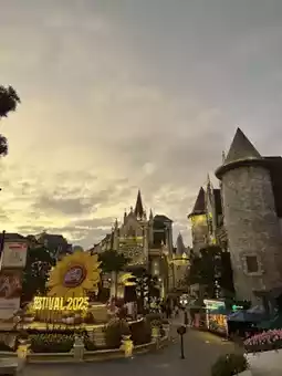 As you venture further inside, you'll discover the equally stunning French Village 🏰. European-style buildings, including churches, castles, and cobblestone streets, are beautifully arranged, making it feel as though a piece of France has been placed atop the mountains of Vietnam. The atmosphere is incredibly romantic, especially when the soft sunlight casts its glow on the structures. Every corner is picture-perfect, like a postcard come to life 💛.