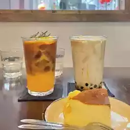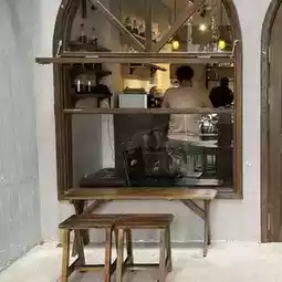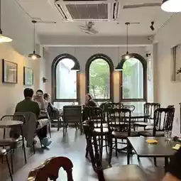 The ground floor is a high, open hall with a few tables. The cafe's decor is particularly focused on photography. For those who prefer a quiet spot to work, there's also a second-floor seating area with power outlets.