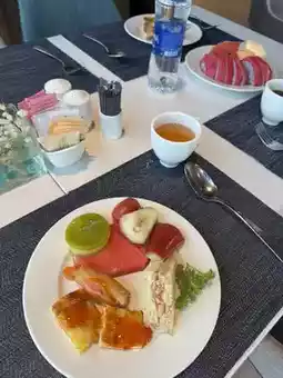 Walking into the afternoon at the Peninsula Hotel in Danang, you're greeted by a high-ceiling lobby and bright floor-to-ceiling windows. Sunlight streams in, illuminating the space with a gentle yet grand atmosphere. Enjoying afternoon tea here is both a delight for your taste buds and a holiday ritual.
