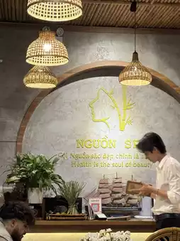 Entering Danang's Nguồn Spa, you're greeted by a subtle aroma and soft lighting. The space, designed with wood and linen, exudes a natural atmosphere, inviting a sense of peace and relaxation.