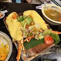 3. CHAR Grill House: A Wagyu Seafood Feast. Enjoy the Wagyu A5 Pho Set (VND 1,099,000/2 people) at CHAR Grill House. The beef is tender and served with roasted bone marrow and a poached egg in a delicious broth. The seafood platter is fresh and chewy, and the riverside seating with a night view is the perfect finishing touch! ๐ฒ๐ท Photo Tip: Take a close-up of the Wagyu Pho, blending the waterfront lights into the background to highlight its luxurious flavor.