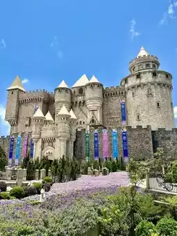 On the other hand, Eclipse Square buzzes with energy. Street performances, colorful shows, and open-air festivities bring a vibrant contrast to the castle’s solemn charm. It’s the park’s beating heart, where people gather to celebrate under the mountain sky.