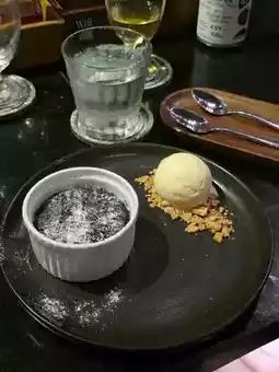 🌟Dark chocolate heart-shaped cake with vanilla ice cream is recommended for dessert. The freshly baked chocolate has a melted texture and a blend of ice and fire