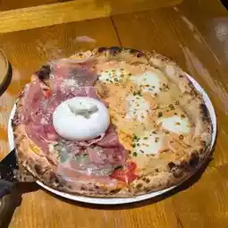 🌟 Signature Burrata Parma Ham Pizza Must Order! Once on the table cut the cloth bag cheese, sandwich the savory ham to eat, evil to want to order more directly ~ His pizza flavors are super many, all can be half and half paired, perfect for a group of friends to share and try two flavors at the same time!