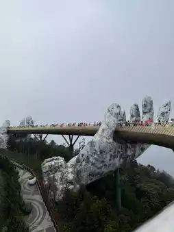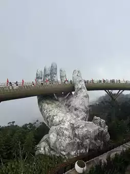 2️⃣ ✋ The Buddha's Hand Bridge is a landmark of Mount Bana, two giant palms supporting the bridge is super shocking. However, the bridge is often overcrowded, it is recommended that you can choose your meal time to avoid the crowds, and the weather in Bana Mountain changes greatly, sometimes fog will cover the Buddha's Hand Bridge, if you encounter do not be discouraged, wait for a while the fog will disperse
