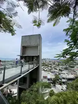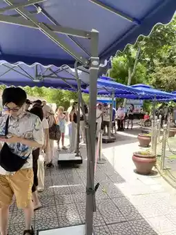 When we reached the temple entrance, there were a lot of people, so we had to queue to buy tickets. There's also an option to buy elevator tickets for those who don't want to walk up. I recommend taking the elevator, as it saves time and energy. The day we went was extremely hot, and climbing up several levels alone was tiring.