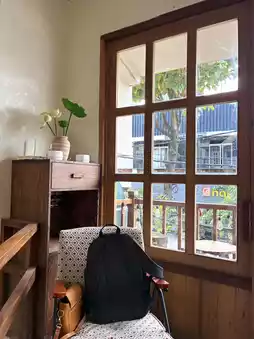 The second floor is quiet and has a small balcony, making it a great place to relax and gaze out over Da Nang. There's air conditioning, but it's not very cool. 🥹