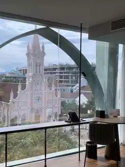 Located in the heart of Da Nang, M Village Hotel is a beloved destination for travelers for its sophisticated interior and clean facilities. Rooms offer panoramic views of the Pink Cathedral, making it a popular photo spot. Han Market is also just a three-minute walk away, offering convenient shopping, dining, and cafe tours. This hotel offers a great value for money, boasting a great location, view, and atmosphere at a reasonable price.