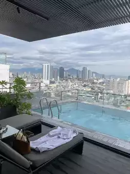San Marino Boutique Danang Hotel is a clean, modern 4-star hotel offering a satisfying stay at a reasonable price of around 50,000 won. The panoramic city views and sunsets from the rooftop pool are particularly popular. My Khe Beach is a 15-minute walk away, offering easy access to the beach and major tourist attractions and cafes. This Danang hotel offers a perfect balance of value, location, and facilities.