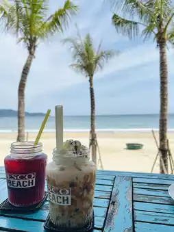 Drinks are just as impressive — signature cocktails (from 120K VND) and fresh coconuts (70K VND) are best enjoyed with your feet in the sand. At sunset, Esco turns into a mellow beach lounge with soft house music and golden light that makes every photo glow 📸🌞.