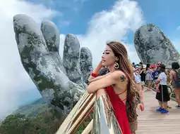 Experience the magnificence of the "Golden Bridge" 🌉💖, Vietnam's most iconic landmark, located on Ba Na Hills in Da Nang. 🇻🇳 The golden bridge, over 150 meters long, is surrounded by two giant stone hands that seem to lift the bridge into the sky. ☁️ The surrounding views are breathtaking, with mountains and floating clouds making it seem like you're in heaven. ✨ A must-see for photographers! 📸
