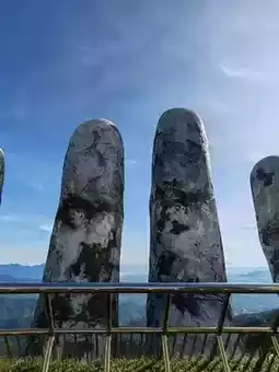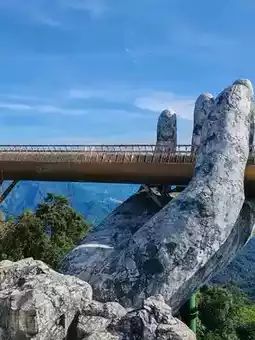What makes the Golden Bridge truly unique is its striking design — a 150-meter-long golden walkway seemingly#golden_hands_br held up by two giant stone hands emerging from the lush mountainside. The hands, weathered to look ancient, symbolize the “hands of the gods” lifting a strip of gold from the earth. This creative blend of nature, art, and engineering has made it a global sensation and one of Vietnam’s most photographed landmarks.#vietnam