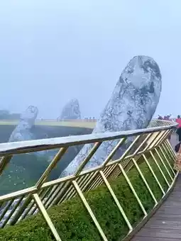Golden Bridge - A giant hand-shaped bridge extending amidst the mist.