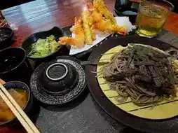 We ordered vegetable tempura udon and tempura jiru soba. The udon had a rich, deep broth, and the crispiness of the tempura and the sweetness of the vegetables combined to create a warm and comforting flavor. The tempura jiru soba was a wonderful combination of tempura and soba, dipped in a refreshing broth. The noodles were springy and had a nice texture, and the soup, while not salty, was savory and refreshing, leaving a clean finish to the last sip.