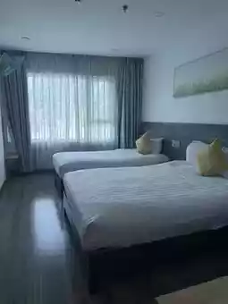🏨 We stayed at Happy Day Hotel: 800 baht per night, 3 people, 1 large bed and 1 single bed (great location, with a view of the Dragon Bridge from the window).