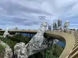 Golden Bridge, also known as the "Bridge of the God's Hand," is an iconic spot in Ba Na Hills. Its design, resembling a massive hand of a deity holding the bridge, offers breathtaking panoramic views of Da Nang city and the sea.