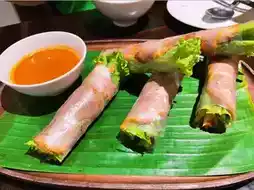 The fried spring rolls (Nem rán) are crisp and fragrant on the outside,